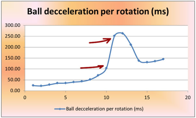 I was searching if there is anything explained about ball deceleration knee point during ball spinning.
