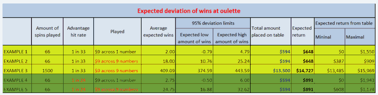 I prepared here five examples about different possibilities at roulette table. With each example we play with an advantage.